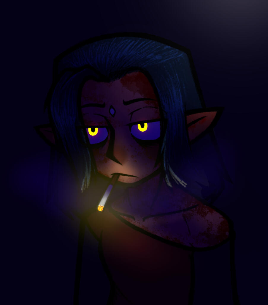 Upon his forehead sits the so called "third eye" all Pureblood Garleans have, not blackened, but fully functional, making him an oddity amidst mixed-blood garleans.
